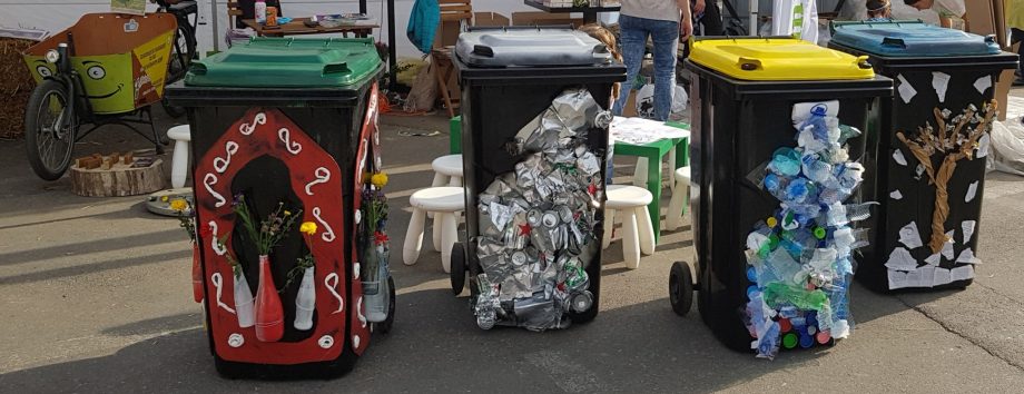 Sambata am fost invitat de prietena mea Ana sa particip la un stand in cadrul Urban Fest. Acest festival isi propune sa ne invete cum putem trai, distra si face afaceri intr-un mediu sanatos si intr-o economie circulara. Dar nu despre festival vreau sa va vorbesc ci despre joaca. In cadrul standului proiectului In Verde (www.inverde.ro) a trebuit sa decoram patru pubele, fiecare cu decoratiuni in functie de ce material se colecteaza separate in ele, metal, sticla, plastic si hartie. Apoi am facut o clepsidra din PET-uri pe care am pus-o intr-o gradinita cu floricele si bancute, evident tot din sticle reciclate. Desi m-am trezit la ora 7:30 si am lucrat toata ziua, m-am distrat de minune cu ceea ce trebuia sa fac si mai ales ca am petrecut timpul cu niste oameni extraordinari. Rezultatul? Arta, joaca, butaforie sau ziceti-le voi cum vreti. De ce am facut asta? Pentru ca a fost amuzant si relaxant. Abia astept sa mai particip la proiecte de acest gen.
